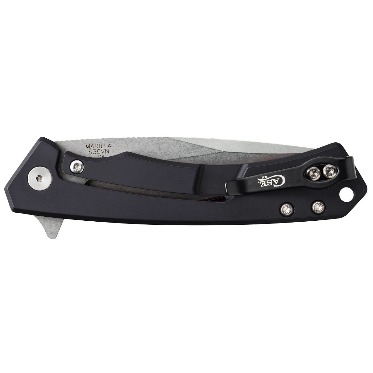 Black Anodized Aluminum W/Black G-10 Inlay (Marilla S35VN) Drop Pt Ser